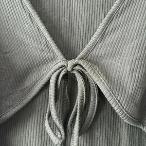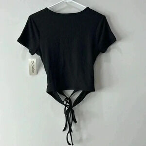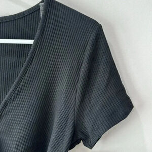 Occasion Black Ribbed Crop Top XL NWT V-Neck Front Ties