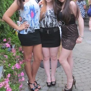 Silky top with tightish bottom (almost like a bubble dress). Worn once for a wedding but can be worn to anything from a sweet 16, Mitzvah, homecoming, etc.