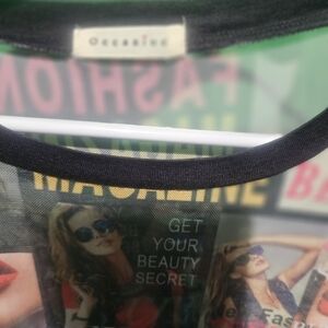 Occasion Multicolor Graphic Print Women's Top Mesh Medium EUC PTP 22