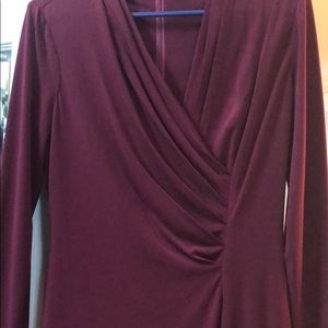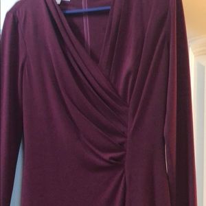 Long sleeve, jersey knit v neck cranberry colored dress excellent condition