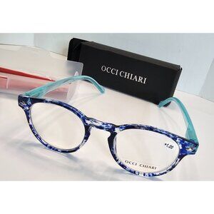 Occi Chiari Blue Reading Glasses +1.00 Power Unisex Round Design Marble Style