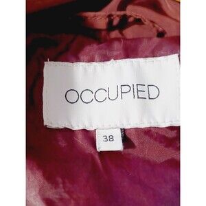The jacket is made of polyester both inside and out, with a quilted design and zipper accents. It also has convenient pockets to keep your belongings. This jacket is machine washable and can be worn in winter fall and spring. The size is a women's large. Get ready to brave the outdoors in style with this occupation puffer jacket.