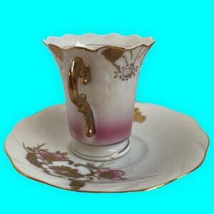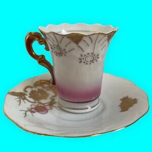 Occupied Japan Demitasse Cup & Japanese Saucer Hand Painted Pink and Gold