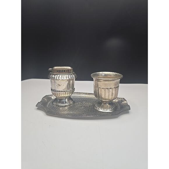Occupied Japan Vintage Table Lighter,Tray And Holder Silver Tone