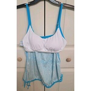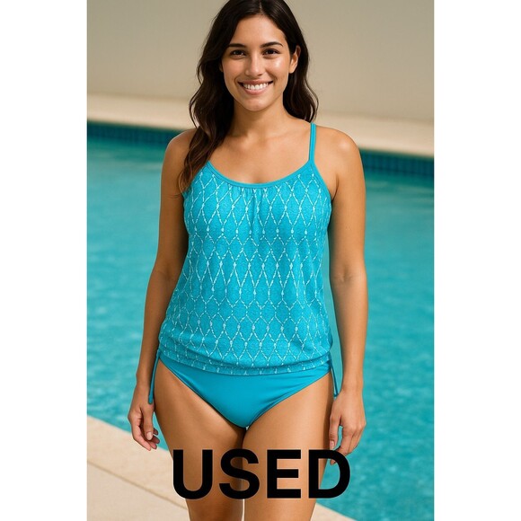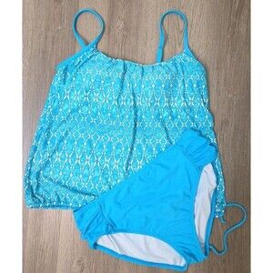 Ocean Avenue Swimwear Tankini Top and Bikini Bottom Set Blue Geometric Size L