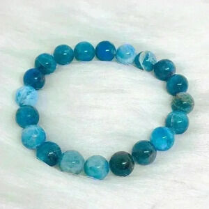 This Ocean Blue Apatite Stone Bracelet is a stunning accessory featuring 10mm beads in a beautiful sea blue hue, giving it an eye-catching quality. Additionally, it boasts an excellent fit with its elasticity to fit any size wrist, up to a diameter of 2.5 inches.
