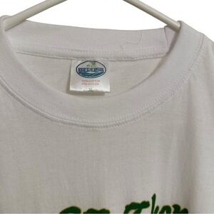 Vintage white St. Thomas U.S. Virgin Islands tourist tee by Ocean Blue Apparel, featuring a colorful illustrated Caribbean map with dolphins, palm trees, and a compass rose. Made of soft, pre-shrunk 100% cotton and tagged size XL. A fun tropical piece perfect for beach days or vacation vibes.