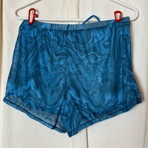 This 3 piece set has you covered! Womens Sz L set, the wave pattern is perfect for a trip to the ocean or lake. Full bikini with sheer cover shorts. Super cute!