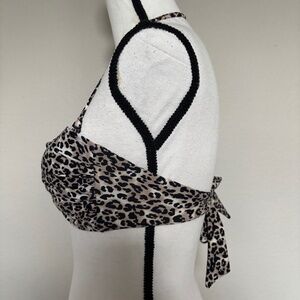 Ocean Blues Bikini Top Leopard Animal Print Bandeau Molded Cups Women's Size S