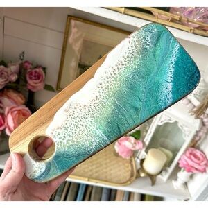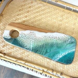 Ocean Blues Charcuterie & Cutting Boards Tapered Teak Wood & Epoxy Resin