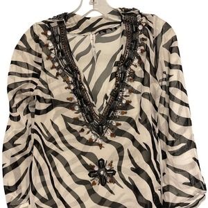 Ocean Breeze Beaded Cover Up Black & White Zebra Print Small Pre-owned