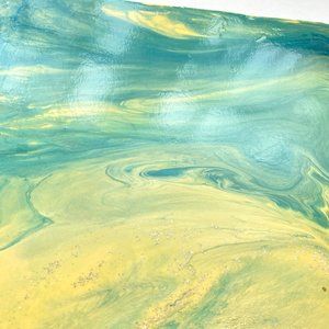 ‘Ocean Breeze’ is a soothing mixed media painting in the Sea Song collection by Artist Tristina Dietz Elmes. It features a gorgeous swirling shiny liquid oil paint finish with sparkly organic mica chips.