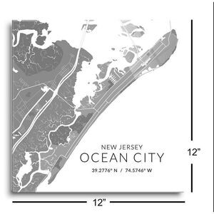 Ocean City NJ Minimalistic Map with Coordinates, Modern Glass Wall Art, 12"x12"
