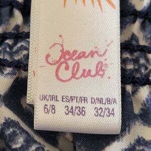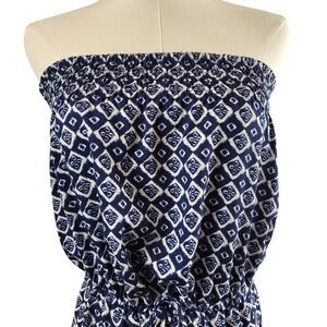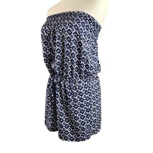 Ocean Club X-Small Blue White Geometric Romper Off Shoulder Smocked Tie Waist