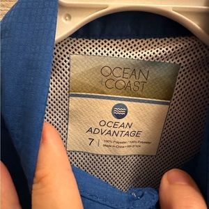 Ocean + Coast Boys Fishing Button Shirt Blue Ship Boat Size 7
