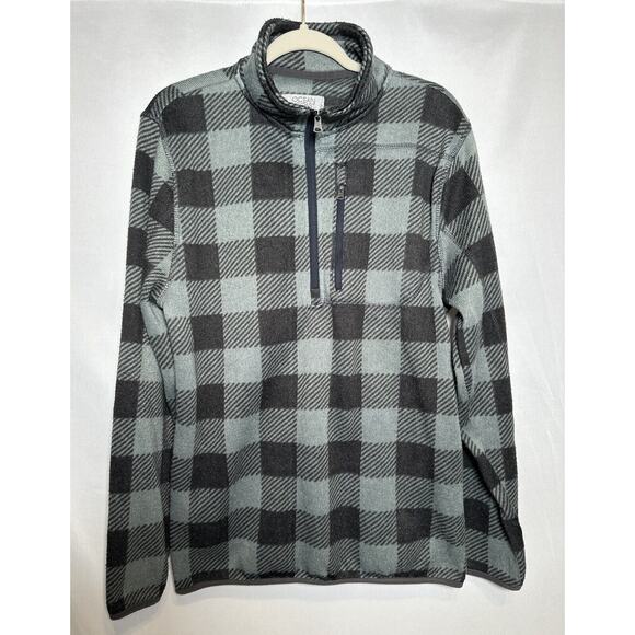 Ocean Coast Men's Medium Green Gray Black Plaid Quarter Zip Pullover Fleece