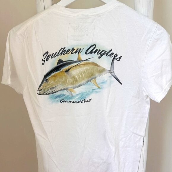 Ocean & Coast Men's White Fish Logo Southern Anglers Tee Shirt SZ S