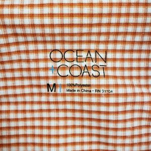 Ocean Coast Shirt Mens Medium Red White Check Button Up Short Sleeve Pockets