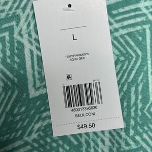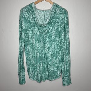 Ocean + Coast Womens Pullover Sweater Large Aqua Blue Geo Lightweight Swim Beach