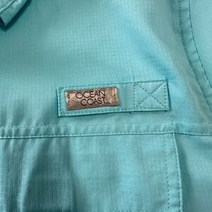 Ocean Coast men’s medium button up front fishing shirt front pockets vented back