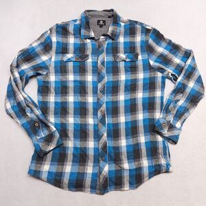 Ocean Current Gingham Flannel Long Sleeve Button Shirt Mens Size L Blue Gray