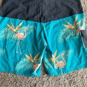 Ocean Current Gray / Blue Flamingo Swim Trunks Size 36