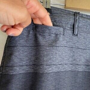 Ocean Current Men’s Board Short Surf Swim Trunks. Striped. Downstring. Color Gray. Size 36. Measurements added in images. Polyester 94%, spandex 6%. Made in China. Used like new.