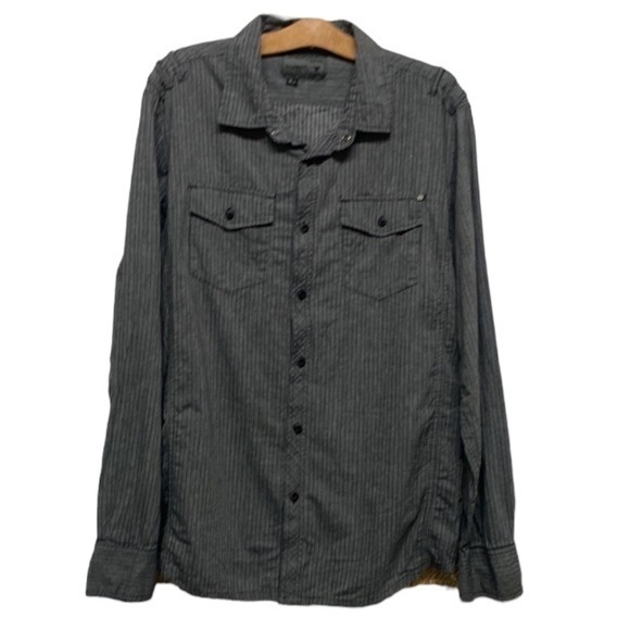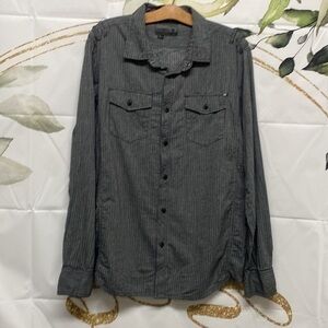 Ocean Current Mens Button Up Shirt Size L Dark Gray Striped Long Sleeve (M-459)