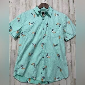 Ocean Current Men's Size M Toucan Print Shirt Tropical Green