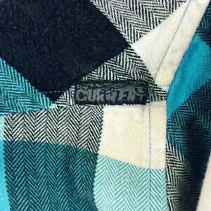 Ocean Current Shirt Black/White/Aqua Young Men’s Large Soft Plaid Flannel Casual