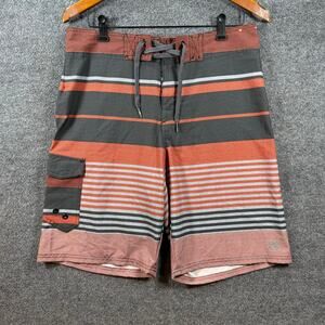Ocean Current Swim Shorts Men's 32 Orange/Black Striped Drawstring Beachwear