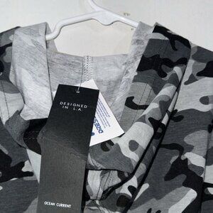 Crafted for those who appreciate the merging of style and comfort, this Ocean Current tee showcases a bold camouflage pattern in a gradient of gray and white hues. The short-sleeve design and hood add a contemporary touch, ideal for casual outings. Designed in L.A. and made from soft cotton for a gentle feel.