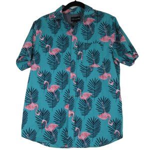 Ocean Current men's pink flamingo short sleeve button down shirt, M