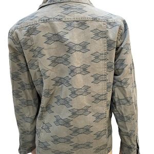 Ocean Current unisex green print jean jacket long sleeve snap button up size lg