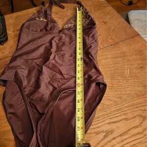 Ocean Dream Brown One Piece Swimsuit with gold embroidery Women's size 12