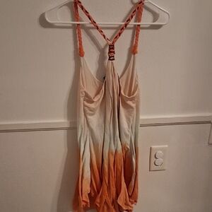 This sleeveless top from Ocean Drive features a stunning cream to orange ombré effect, perfect for a casual day out. The backless design adds a touch of elegance, while the lightweight fabric ensures comfort and style. Enjoy the unique braided straps that complement the vibrant orange hue.