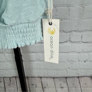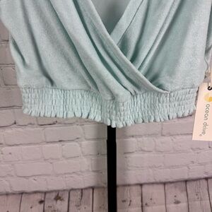 Chic aqua sleeveless top by Ocean Drive. Features a wrap front and elastic hem. Brand new with tags. Smoke free home.
