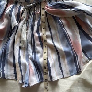 Ocean Drive Blue & Pink Striped Strapless Skort Romper Smocked Waist Tassel Tie
