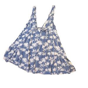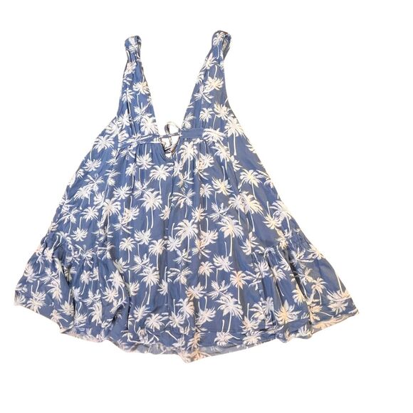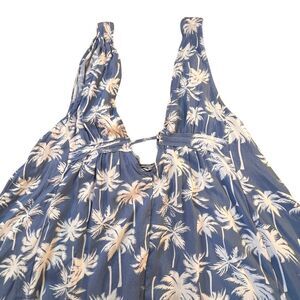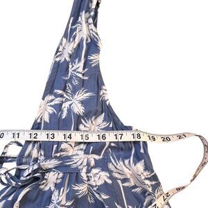 Get ready for a tropical escape with this stunning Ocean Drive mini dress in size medium. The dress features a V-neckline with a tie closure, perfect for a casual or party/cocktail occasion. The layered accents and palm tree pattern add a touch of Hawaiian and beachy vibes, making it the perfect addition to your summer or spring wardrobe. Crafted from lightweight rayon fabric, this dress is both comfortable and machine washable for easy maintenance. The dress is short in length, sleeveless, and has a cut-out feature, adding a touch of style to your overall look. This dress is ideal for those who love the summer girl, vacation, or islandwear themes. Add this dress to your collection and make a statement at your next beach party. Measures a 36 inch chest and is 34 inches long.