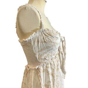 Ocean Drive Mini Dress S Leaf Print Tie Front Tan Cream Pink Tiered Size Small