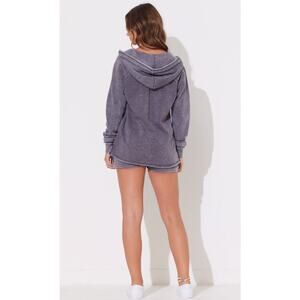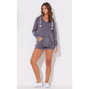 Ocean Drive Steel Grey Blue Burnout Pullover Fairfield Beach Hoodie w Wrap Cords