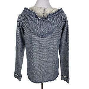 Ocean Drive Striped Hooded Drawstring Sweatshirt Women's Small Navy Blue White