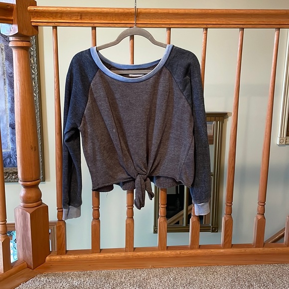 Gray & Navy Front Tied Top