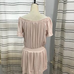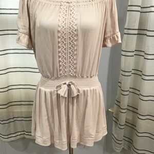 Ocean Drive Women Size Med Baby Pink Off Shoulder Eyelet Crochet Mini Dress Boho