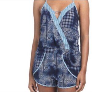 NWT navy blue racerback adjustable strap romper. Wrap style at chest.