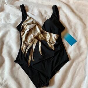 Ocean Jewel NWT black and cream one piece swimsuit, 14