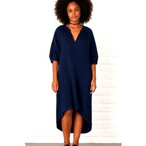 Ocean + Main Blue Gauze 100% Cotton Maxi Dress With Pockets Size 2X NWT
