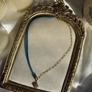Inspired by the tranquil beauty of the sea, the Ocean Muse Shell Necklace blends coastal charm with modern elegance. This handmade piece features a radiant gold-plated chain paired with a vibrant turquoise suede leather lace, creating a striking contrast that evokes ocean waves and golden sands.