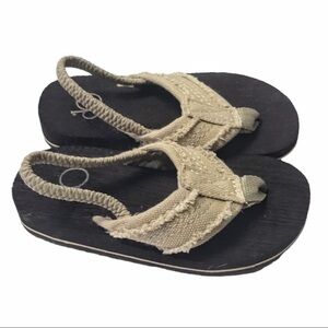 Ocean Pacific OP Beige Canvas Frayed Flip Flop Sandals