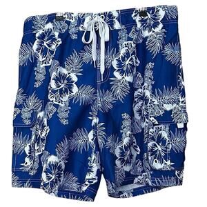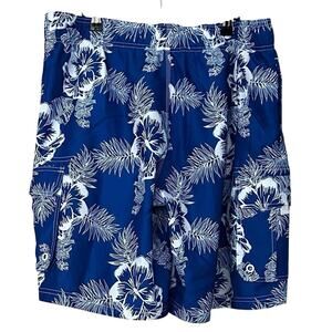 Ocean Pacific OP Mens Size Large Swimming Trunks Blue White Tropical Print